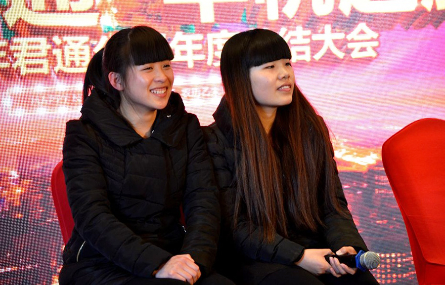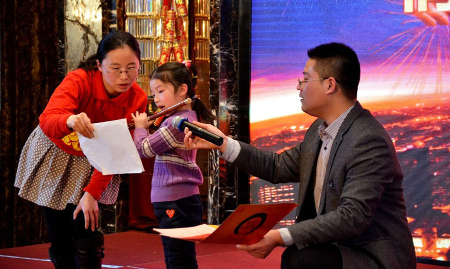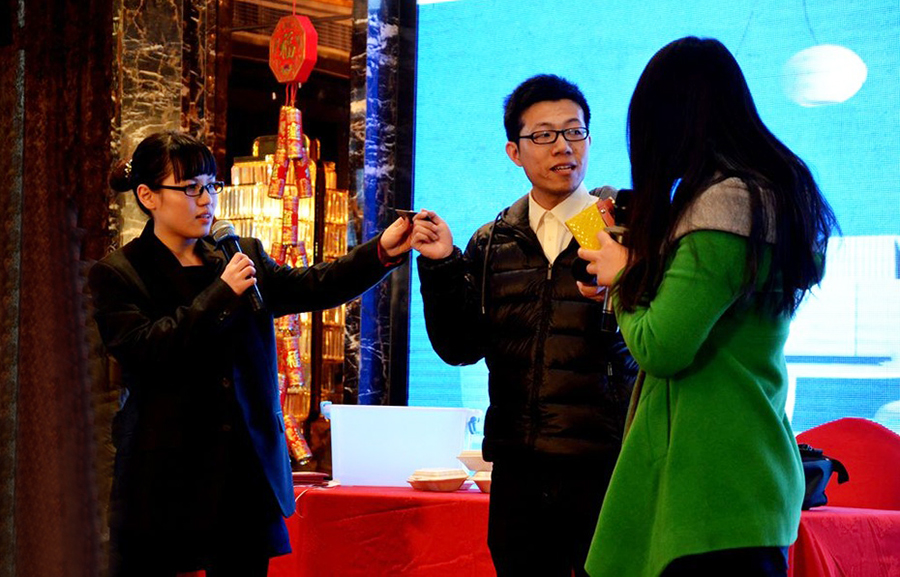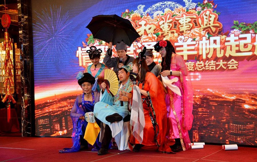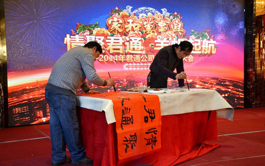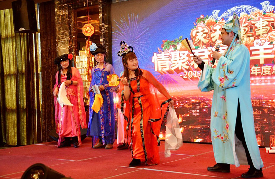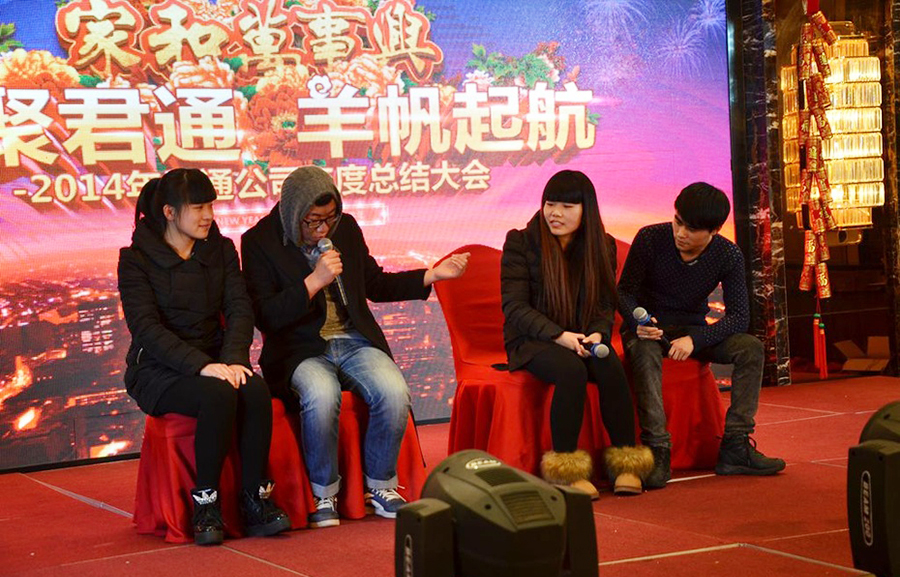 2015年2月11日,民间俗称的小年,好日子。 立春后的江南阳光灿烂,温暖如春。 太湖畔的同庆楼百合厅流光溢彩,喜气洋洋。身着节日盛装的青春少女鱼贯而入,留下银玲般的笑声,走过她们身边,仿佛被青春撞了一下腰。 君通春晚在欢快的乐曲声中,在员工的欢呼声中拉开了帷幕。 君通总经理尹可珍女士发表了热情洋溢的新年贺词。2000年10月尹可珍女士创立君通公司,几度风雨几度春秋,君通经过十四年发展成为本地IT行业中实力强的企业。熟识我的博友可能都知道,可珍晚常提到的君子兰,我好的女朋友。很开心参加这个欢乐的盛会,虽没有明星大腕,没有星光灿烂,却是每个君通人的倾情演绎,真情流露,好。 ![]() 君通的春晚现场仿佛是一个欢乐的大家庭,演出以部门家庭为单位,更有许多员工可爱的孩子也表演了许多节目。 市场部的美女妈妈带着双胞胎女儿跳起了欢快的《小苹果》
