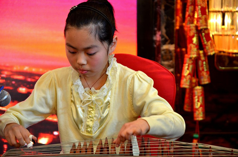 ![]() ![]() 在小女孩悠扬的古筝乐曲中,蓍名书法家和画家现场助兴。