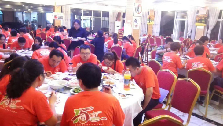 时间过得很快,一眨眼到了晚宴时间,一大家子在一个大厅吃饭,其乐融融。台上我们公司大佬王经理带头唱起了歌给大家助兴,大家也纷纷送上了祝福,我们的大家长尹总也唱起歌送给我们君通给在场的所有人。