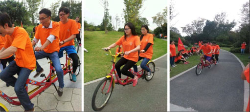 下午的活动是自行车赛,为了大家的安全,也是考验车技,比赛的规则是,在规定的距离中,时间长的控制自行车到达终点才能取胜。大家踊跃报名,选手们不断超越,不断刷新成绩,观看挑战也是惊心动魄,甚至比参赛选手都紧张,过程不仅考验的是技术,更是心理的较量。