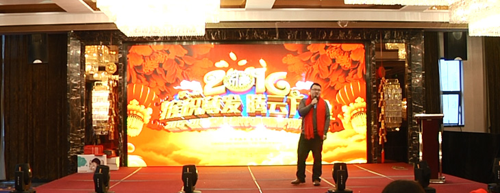 紧接着主持人杜工:宣布年会正式开始,年会分为2个部分,上午和下午,上午主要是公司领导层和各个部门做一年的工作总结和2016年工作计划,下午是精彩的年会节目表演,每个节目都是各个部门精心准备,利用空余时间排练,都是为了这能够给大家带来欢乐。