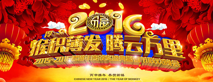 随着舞台显示屏出现画面,“猴积薄发,腾云万里”2015-2016君通年度颁奖盛典暨春节联欢晚会喜庆的画面,展现在君通人眼前,这个是今年春晚的主题,这个也是我们公司设计总监,为每年年会设计的作品,寓意深厚,栩栩如生。