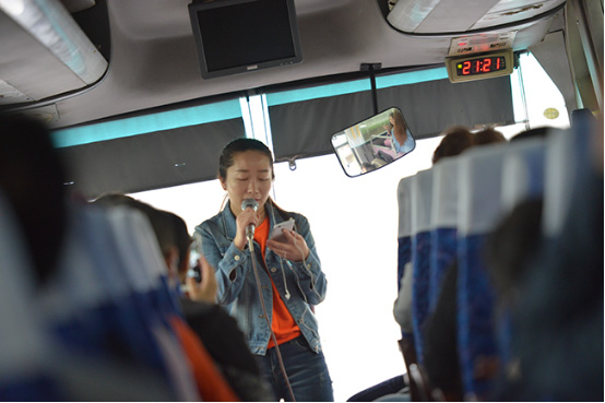 这次跟随我们的是景区的导游-汪导,汪导在车上向我们说了一下景区游玩的注意事项,以及我们随后将要游玩的景点内容,然后君通演唱大会开始了,先上来的是几位麦霸争相上台表演,被他们的热情感染到后,大家纷纷踊跃的上来表演。