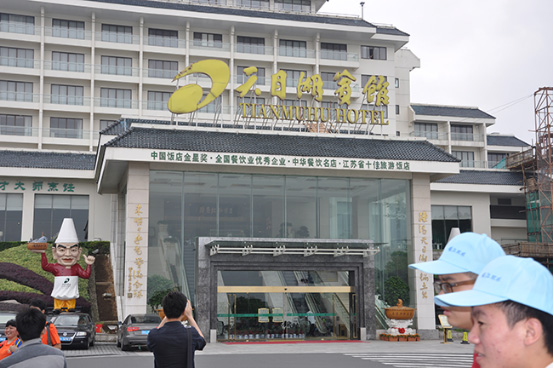 这样很快我们到了天目湖景区的门口,从停车场没走多远是大名鼎鼎的朱顺才的鱼头汤酒店,说到天目湖不得不提到朱顺才的鱼头汤,朱顺才早年当兵退役后,到天目湖,发现做菜的时候把鱼头剩下十分浪费,于是在他反复钻研了很久后,才发明了鱼头汤,直到领导邓小平也说鱼头汤好喝之后,天目湖的鱼头汤扬名天下。汪导还说这次我们有机会能喝到当地的鱼头汤,心情真是有点小激动呢!