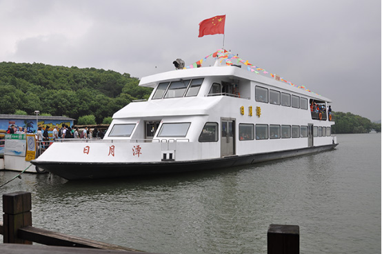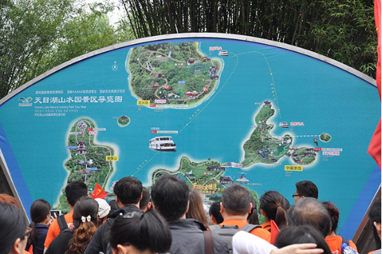排队没多久我们上了游船,站在游船的甲板上,看着天目湖的景色,真是如诗如画,百闻不如一见!