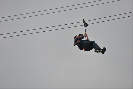 到了要离岛的时候,汪导说我们可以去参加高空滑索,本身有点恐高的我,犹豫了一会儿后,决定还是去参加,因为觉得难得有这次的机会,我要去尝试一下,也去突破一下自己,来到台子上,紧张的穿戴好设备后,我和卢啸啸组队开始了!一开始因为重心的原因,我们背对着,转了一个身,没有看到前面的景色,不过在这半分钟不到时间里,真是爽快极了,凉爽的风和触之可及的湖面。