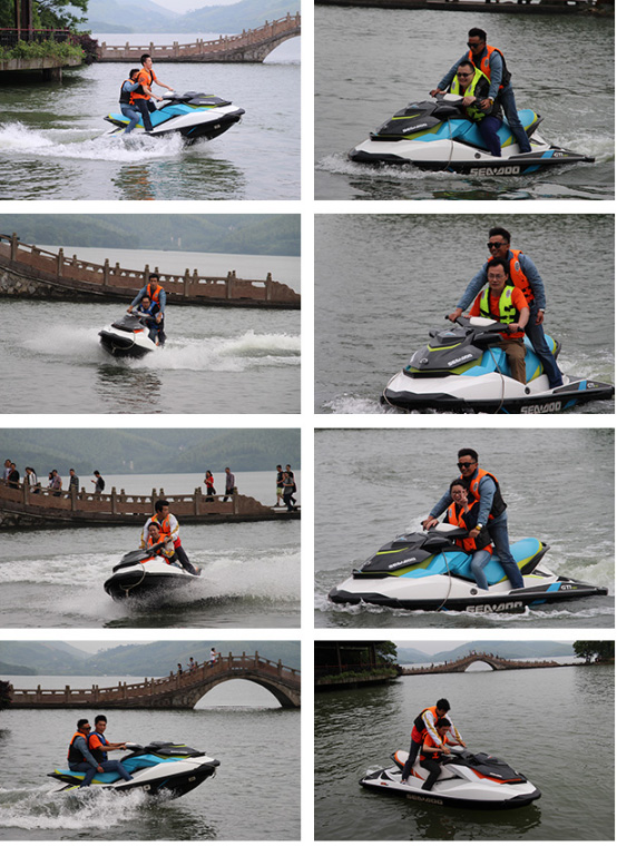 时间过的飞快,转眼要到了集合的时间,看着康总、谈经理他们都去玩了摩托艇,我也按耐不住去报名了,刚上去的时候,感觉重心都不稳,在教练的指导下,终于颤颤巍巍的开了出去,和天目湖做了一次零接触。