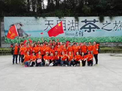 首先,我们在天目湖山水园景区外,来了一张集体合照,穿着公司统一的服装,是上面印有君通图案的T恤,体现了我们君通人的风采与蓬勃的朝气!