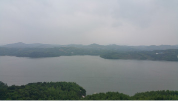在龙兴岛上,走在木质的走道上,两边树木郁郁葱葱,夹杂着鸟语,犹如进入丛林中,而我们化身成了一个个探险家。当登上岛的高处时,天目湖的美景便一览无余,简直是美不胜收!