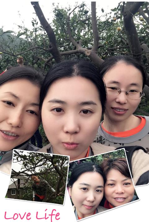 美女们爱的当然是采橘子、拍照,留下自己的倩影: