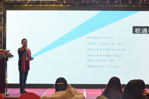 无锡君通的家人们在这早早地出发,来到会场,为这一个特殊的日子做好了准备。君通大家长尹可珍女士首先上台致辞,并总结了这一年来的收获,也为我们描绘了新一年的目标。然后,康总也作了精彩发言,感恩十六年来客户的信任,感恩君通伙伴们的真诚付出。接着,市场部的精英们也分别上台总结了这一年来的收获,并雄心壮志地宣布了2017年的奋斗目标,大家团结一心,2017撸起袖子加油一起干!