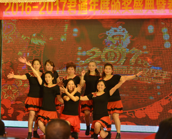 连以往很少上台的顾雪萍、高蒙也和陈导一起上台给我们唱《绿光》将晚会推向高潮,惊喜的是尹总姐姐和尹总一起给大家高歌一曲,一个感染着一个都希望在君通这个大舞台上留下自己的光辉烙印,更祝愿君通红红火火、蒸蒸日上!