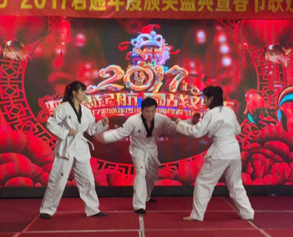众人捧腹后接下来是电营部的歌唱和跆拳道表演,哇塞,他们是不是真练过啊: