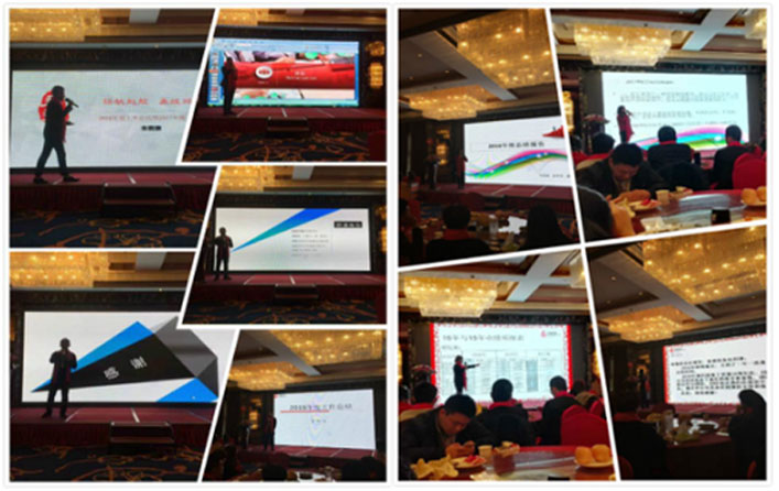早上一大早我们都陆续来到了年会举办地----东绛同庆楼二楼百合厅。大家都是盛装出席,个个都精神抖擞。早上8:30左右,我们的2016年度总结报告正式开始。首先是我们的大家长尹总的“起航2017 我们将开拓创新,与时俱进 谱写新的篇章,一起(17)前行!”的主题报告,接下来依次是康总,邓总,乔总,市场部大区经理们,技术部主管,客服部主管,电营部主管以及行政部主管的年度工作总结报告以及各个部门2017年的工作目标。
