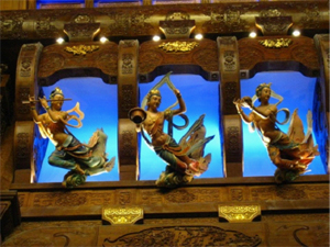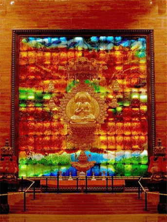 一点多钟,我们在具有会议和演出多功能的灵山圣坛,观看了一场由国内高水平团队导演排练的,以弘扬传统文化、启迪心灵智慧为主旨的音乐大典。领略了一番佛祖释迦牟尼由早年之奢华生活到入道成佛的心路历程,在看完这短短的二十分钟的演出之后,除了震撼之外残留在脑海中的唯有一片空白。我似乎领悟了一个字的深刻内涵——无!人生短短数十年,从裸身来到这个世界,终又悄然的离开这个世界,化成一颗尘埃??梢运凳钦嬲游薜轿蓿∫磺薪晕蓿。?!佛,是一种大胸襟、大智慧、大热爱。所谓“灵心”,也许是对这一点的体悟吧?如果能够达到这样的境界,心内身外,无不是“净土”。