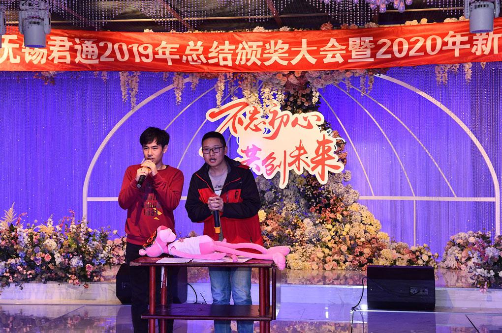 看完激动人心的颁奖盛典后,大家都想一睹期待已久的君通杯春节联欢晚会,伴随着恢宏大气、摄人心魄的新年贺岁音乐四位帅气靓丽的主持人星光闪耀地登上君通春晚舞台: