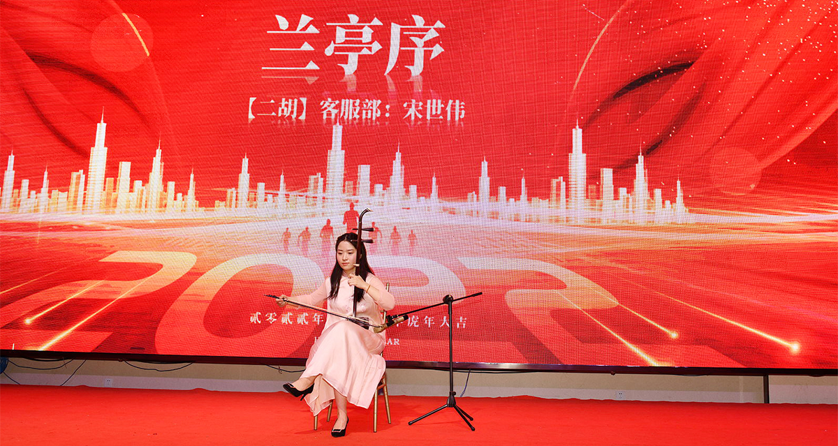 接下来让我们继续感受中华文化,我们客服部的傲娇世伟为我们带来二胡演奏《兰亭序》,娓娓动听、抑扬顿挫: