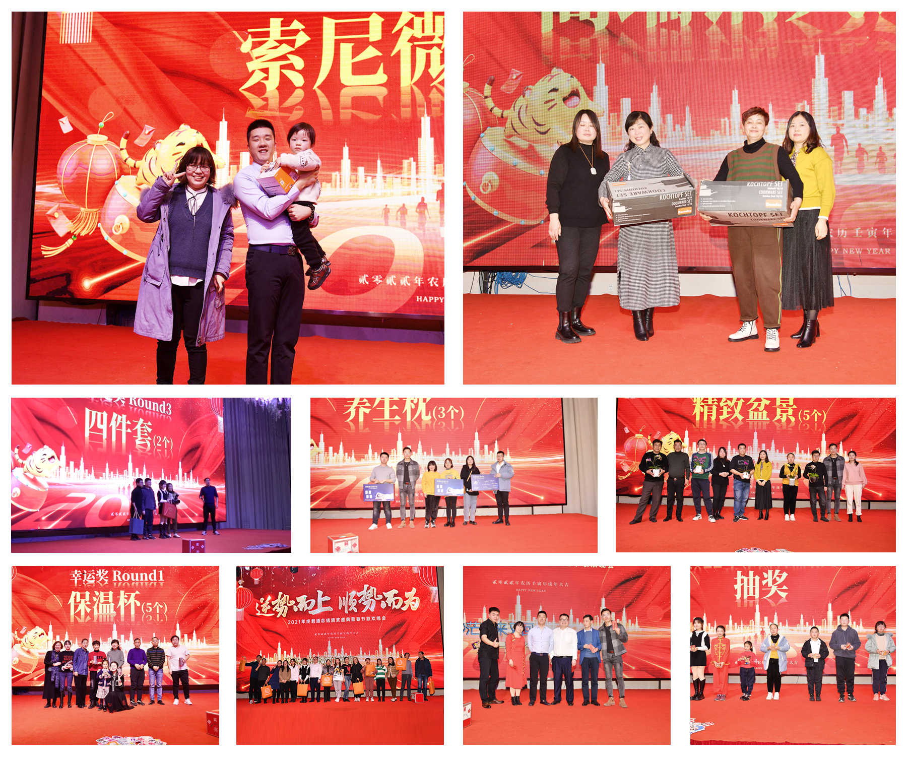 丰盛的晚宴,激动人心的抽奖环节开始了,晚宴前每个人都拿好了自己的抽奖号码,希望自己就是那个幸运儿,大家边吃丰盛的晚宴边欣赏歌王歌后们带来的歌曲,君通的歌王康总一首首经典曲目《渡情》、《************等》等余音绕梁、引入入境,当然我们的大家长尹总也登台演绎了经典歌曲《粉红色的回忆》,一轮一轮的抽奖把晚宴推向高潮,都想争做今晚的幸运儿,希望2022能够给她们带来更多的好运,成为更好的自己!