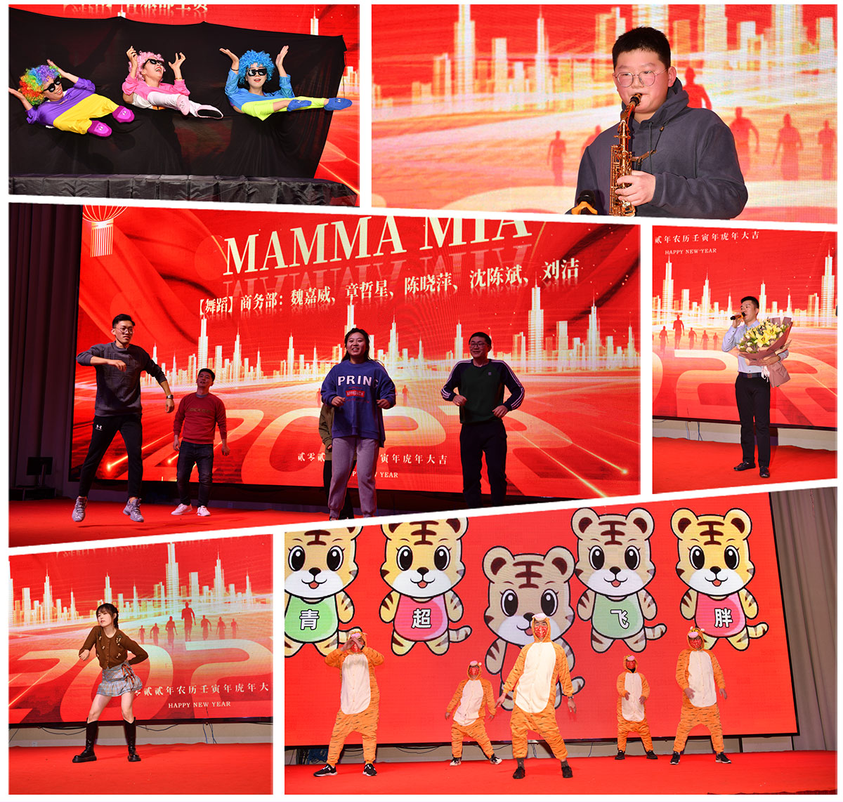 激动人心的时刻莫过于君通的春晚了,在四位靓丽帅气的主持人的主持下,君通的春晚拉开了帷幕,市场部的辣妈们为我们带来的舞蹈《少年》,客服带来的《姐姐妹妹站起来+护花使者》轻盈优美的舞姿,充满活力,韵味十足让人眼前一亮,市场部老当益壮王经理带领的妃子公公们演绎的《甄嬛后传》表演的淋漓尽致,那妆容那服饰无不让人惊叹,技术部的姑娘们带来的《黑夜里的一束光》真的是黑夜里的一束光,在黑夜里那个拼命的挥动着荧光棒,完全不顾及形象一说,反正就是黑夜里的一束光也看不见啥形象,再看看客服部带来的《小人舞》真的是让人捧腹大笑,表情动作十分到位,平时不仅服务工作做的好,表演也是很认真的,女大十八变,看看赵经理的女儿谈静奕的show time,惊动全场,身材优美,舞姿那就更不用说了,虎年当然少不了虎宝宝,看技术部男生们带来的《五只猛虎爱跳舞》,穿着老虎的服装,跳着可爱的虎舞,可爱的很呢,一点也不猛,而是萌萌哒的虎呢。