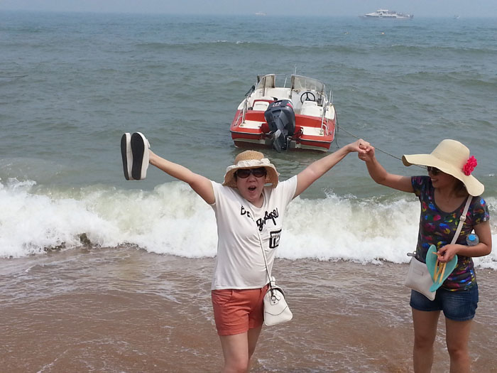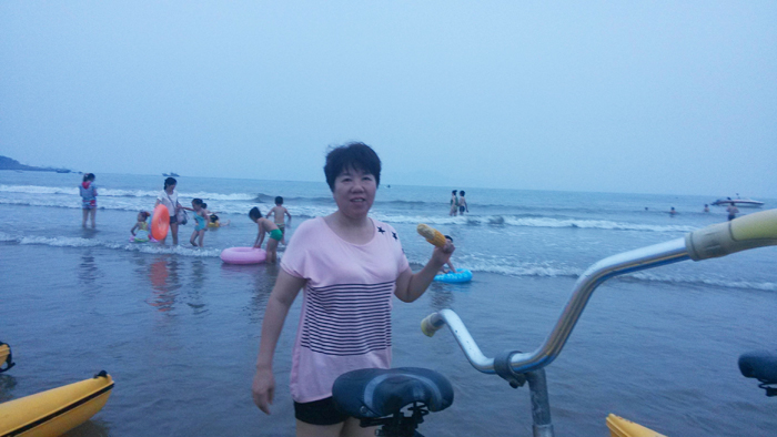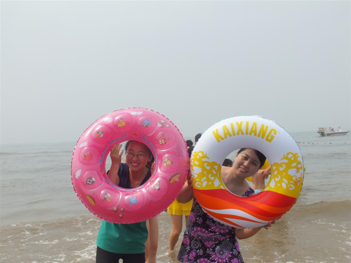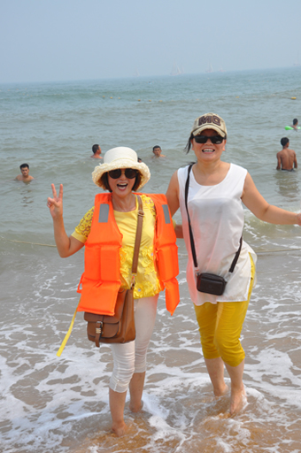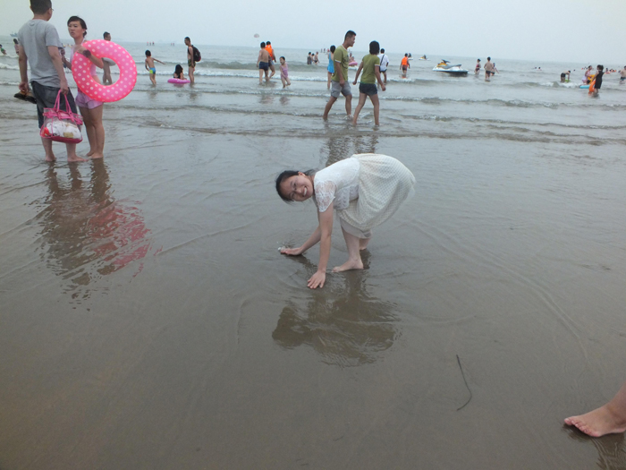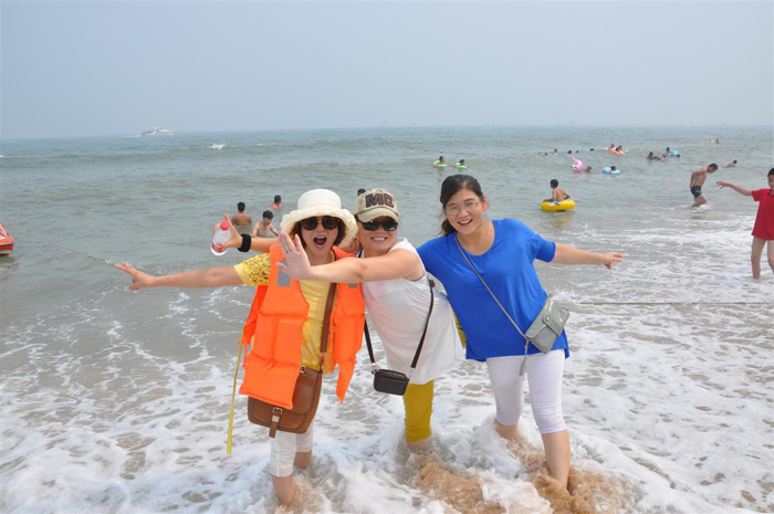 看完白鲸、海狮的游泳该轮到我们游啦,激动得大伙兴冲冲来到青岛市区大的海水浴场: