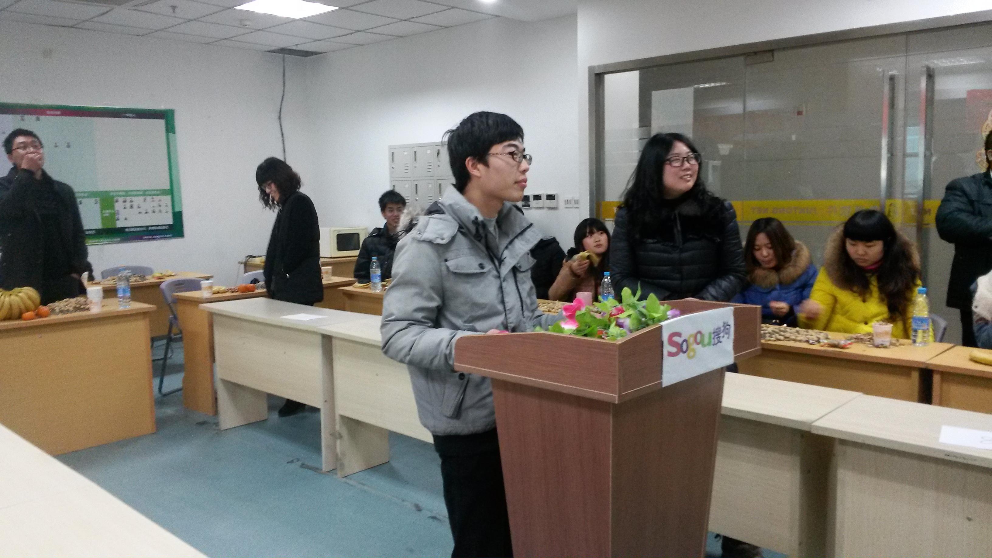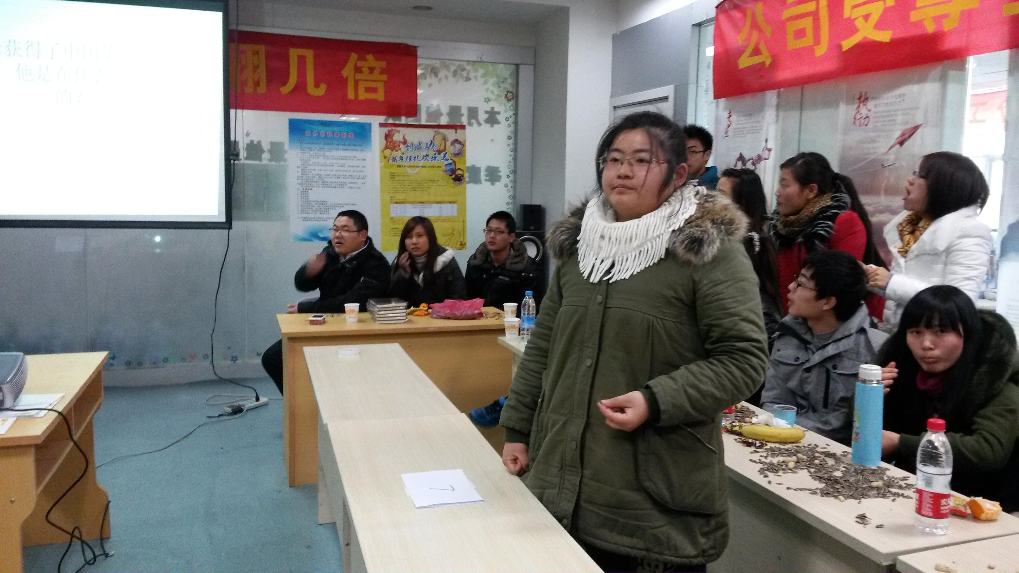 在终的决赛之前,要分别进行,“预选赛”,“复活赛”,和“总决赛”。在邱总监担任导演,宋老师担任主持人,洪晶经理担任策划。“预选赛”也在2013年12月27号的傍晚,在会议室中拉开了帷幕。小伙伴们也在蒋红霞的一嗓子:“所有人到会议室集合!”按部班的坐了下来。我心里也在泛着嘀咕:听说预选赛只有十个名额,自己能不能脱颖而出啊。看着大家焦躁不安的表情,估计在场的很多人也像我一样有这种想法。不管了,先不想这么多了,硬着头皮上吧!