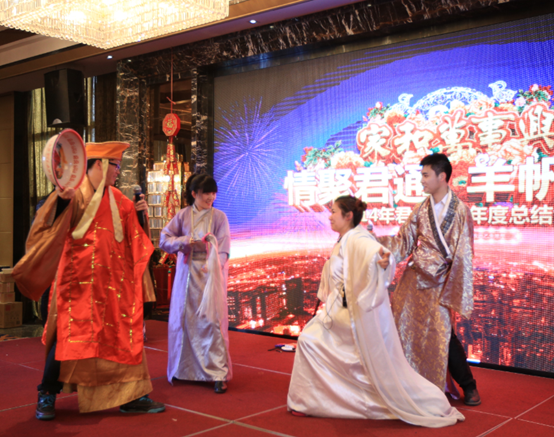 刚说到康少全能,殊不知苏州君通的小伙伴们也是个个能歌善舞、连小品也是创意非凡引起沸腾,很花心思去创作的《包子战群雄》小品献给大家: |