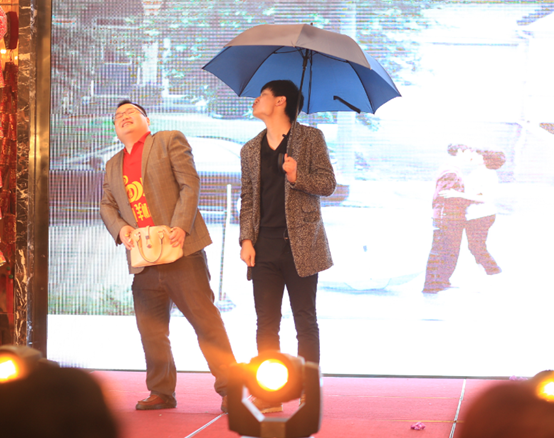 晚会高潮迭起,邓总即兴上台给我们高歌了他的成名曲刘德华的《冰雨》,唱得比华仔还要有水平: |