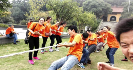 两天的行程安排的非常丰富,拔河比赛,分成四组,两两对决之后再决出一个组,大家信心十足,斗志高昂,每组都选出高大的和重量级的选手。参赛的同事像愤怒了的狮子一样,用尽全身的力气与对手顽强拼搏。很多同事手都磨红了。