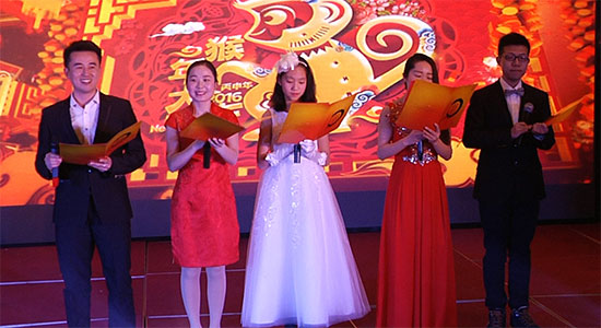 下午,令人激动的春节晚会终于开始了,今年主持人全是新面孔,其中还有我们技术部的卢啸啸,今年他是在君通的舞台上做主持,别看他憨厚的样子,说起话很溜,不知道的人完全感觉不出是次做主持,此外还有一位特殊的主持,她是我们邓经理的女儿--邓卓妍,一段时间没见,已经亭亭玉立,今年也是她担任主持。