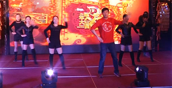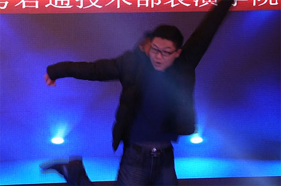 首当其冲的是我们市场部的辣妈们带来的舞蹈<<动感小子>>,其中还混入了一位辣”叔”--我们的浦斌浦大叔,他的动作可一点都不输两旁的辣妈们!