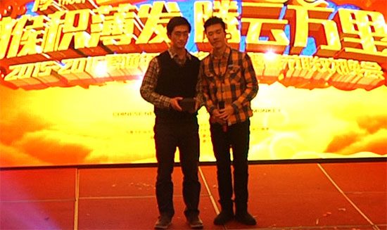 到了晚餐抽奖的环节,我今年幸运的被康总抽中为特等奖!往年都与幸运女神擦肩而过的我,居然中了特等奖,真是我没有想到的,感觉很幸运!特别感谢尹总和公司!!!