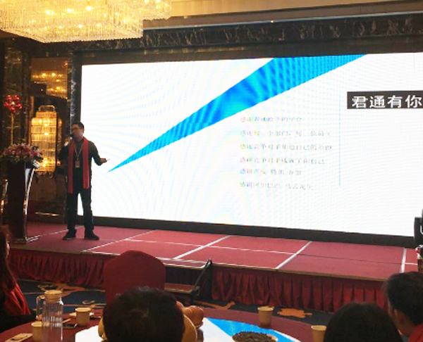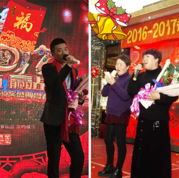 连以往很少上台的顾雪萍、高蒙也和陈导一起上台给我们唱《绿光》将晚会推向高潮,惊喜的是尹总姐姐和尹总一起给大家高歌一曲,一个感染着一个都希望在君通这个大舞台上留下自己的光辉烙印,更祝愿君通红红火火、蒸蒸日上!