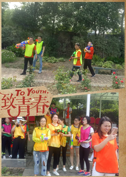 吃饱喝足之后,还有更好玩的在等待着大家哦。尹总作为我们的首席指挥官,带领大伙一起在花海中开始水枪大战,在花园中展开了一场脑力与体力并存的精彩角逐;有我们的到来令整个山庄沸腾起来。有人认真享受活动的乐趣,也有人专门为她们拍下精彩瞬间,例如我、海燕和王经理是专门的摄影师,为大家留下美好回忆。