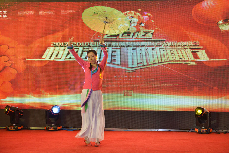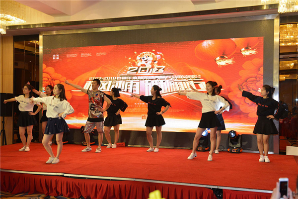 由康总带领的客服和行政部带来的重量级阵容舞蹈——《嗨翻2018》一度点燃了的气氛,赢得了在场观众雷鸣般的掌声。姑娘们在动感十足的韵律中登上舞台,整齐划一、充满活力的舞姿,康总富有感染力的表现,成为晚会的亮点之一。