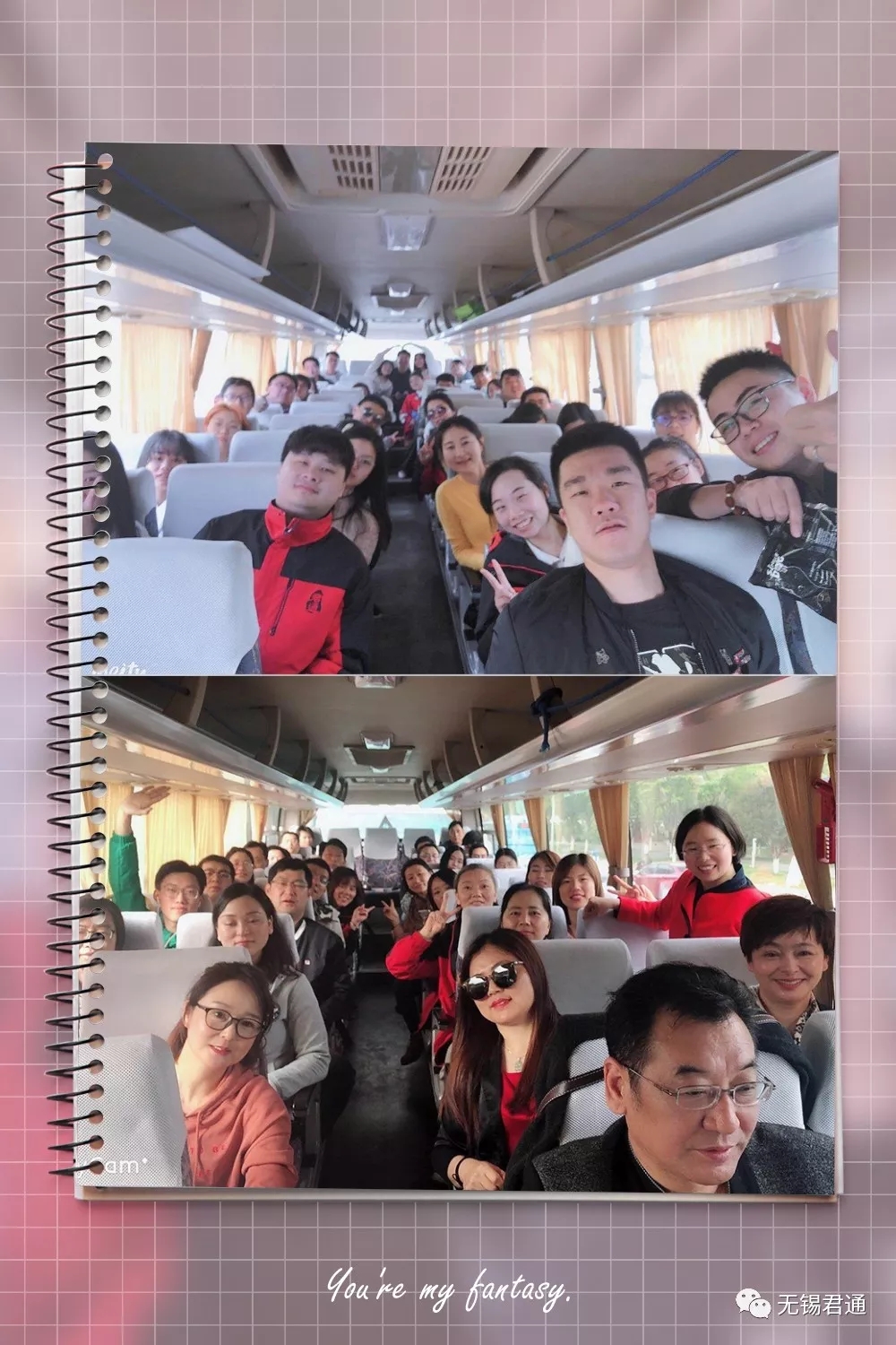 充满着欢声笑语的大巴车