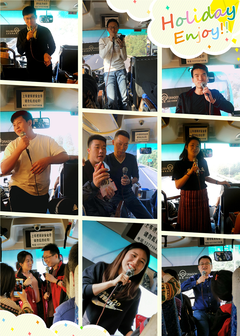 以往的很多活动中,君通人多彩多艺的一面早就被大家知晓。这不在大巴车上,我们继续很嗨。知识渊博,通晓历史的朱经理和赵主任就“吴三桂到底是好人还是坏人”给出了不同的历史情节和自己主观的结论,真是给大伙涨知识了。歌王康总和谈经理依然落落大方的给大家献哥一曲。看到前辈们如此的优良,我们新员工们也不甘示弱,争赶着上来亮相说出自己的“故事”,温柔甜美的客服美女们,兵哥哥沈阳,故事王陈日强,新晋歌神杨红伟仲毅,颜值担当云姐......突然发现来自五湖四海的我们,因为君通这个平台相聚在一起,多么奇妙的缘分!19年文化沉淀的今 天我们以公司为荣,希望未来公司能以我们为荣。加油!每一个独 一无二的你们都是棒的!