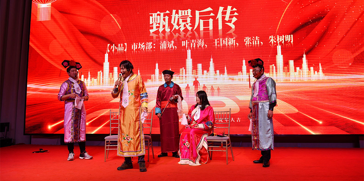 感受中国传统音乐的美妙之后,继续感受古装剧的魅力,大家都看过甄嬛传吧,市场部老当益壮的王经理、浦斌等为我们带来佳作《甄嬛后传》,看看甄嬛又将谱写什么剧情?朱经理演绎得太监让人捧腹不已,细节拿捏得生动形象,我们的帅帅王经理这次的角色也拿捏得淋漓尽致:
