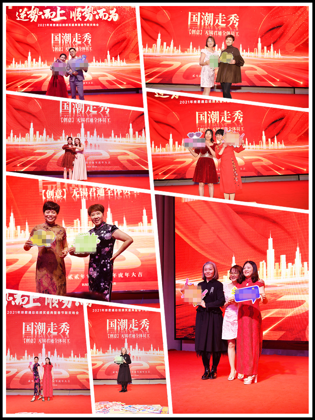 最后每位君通人展现自我的时刻到啦!摄影师找好机位、为我们一一记录最美妙的一刻:全员带来创意节目《国潮走秀》将晚会推向高潮: