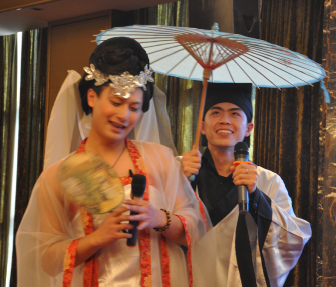 在我们焦灼的期待中他们来了---《白娘子传奇》,超哥、浦斌继续走反串路线,他们居然饰演白娘子和小青,令一阵欢呼,惊叹,我和我的小伙伴们都惊呆了,超哥你那身材,你那走姿,令多少男性女性羡慕嫉妒恨啊,我们都在怀疑你是否是在本色出演呢?的白娘子多了几份妩媚,君通唯有超哥能将其演艺的淋漓尽致。