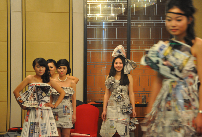 下面登台的可是今晚佳创意风尚奖是由行政部、软件部带来的服装show《花的衣裳》,仔细看看、我们的show很节能环保哦。。。。。。