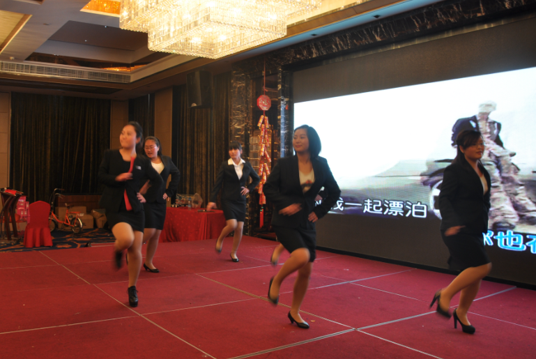 歌声一飘去,市场部的赵经理、刘红等“辣妈组合”登上舞台,舞起了《Trouble maker》,这哪是10几岁孩儿的妈啊?简直个个活力四射、魅力无限。。。。。。