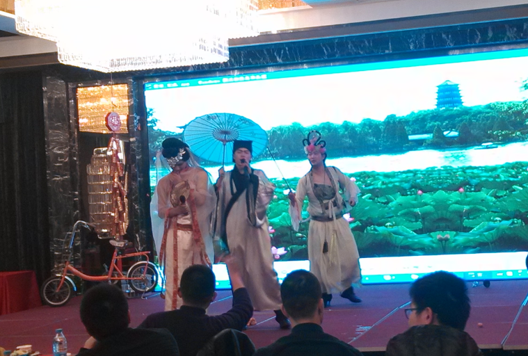然后是本届会议的岁末压轴大戏——《君通春节联欢晚会》,伴随着4位着装靓丽的春晚主持人的脚步跟各位来宾的尖叫声,我们迎来了君通本届“视觉盛宴”的开幕,首先是我们可敬可爱的尹总为大家致春晚开幕词,尹总激情的一席话语让在座的每一位都按捺不住心中的火花,尽情展现自我的时刻到了!